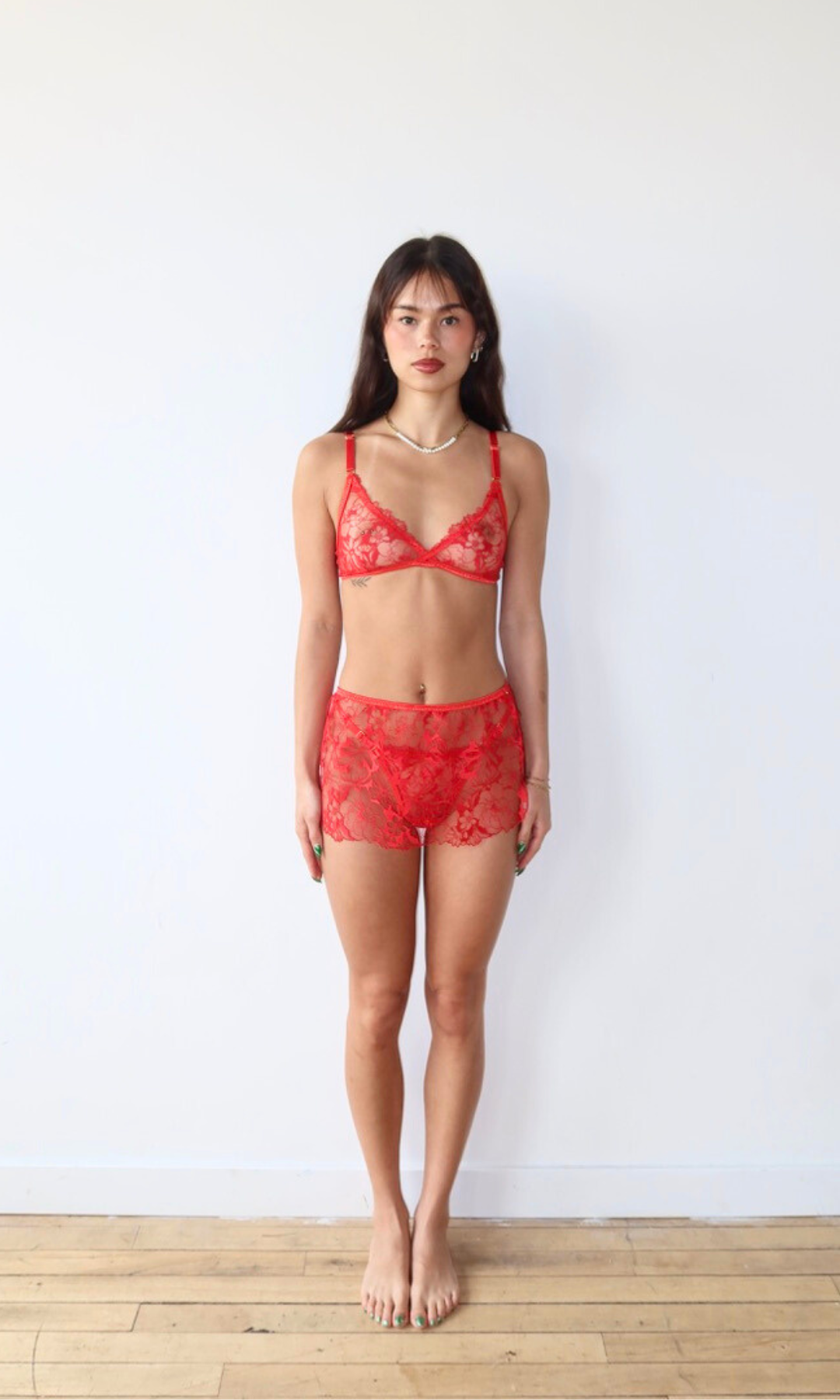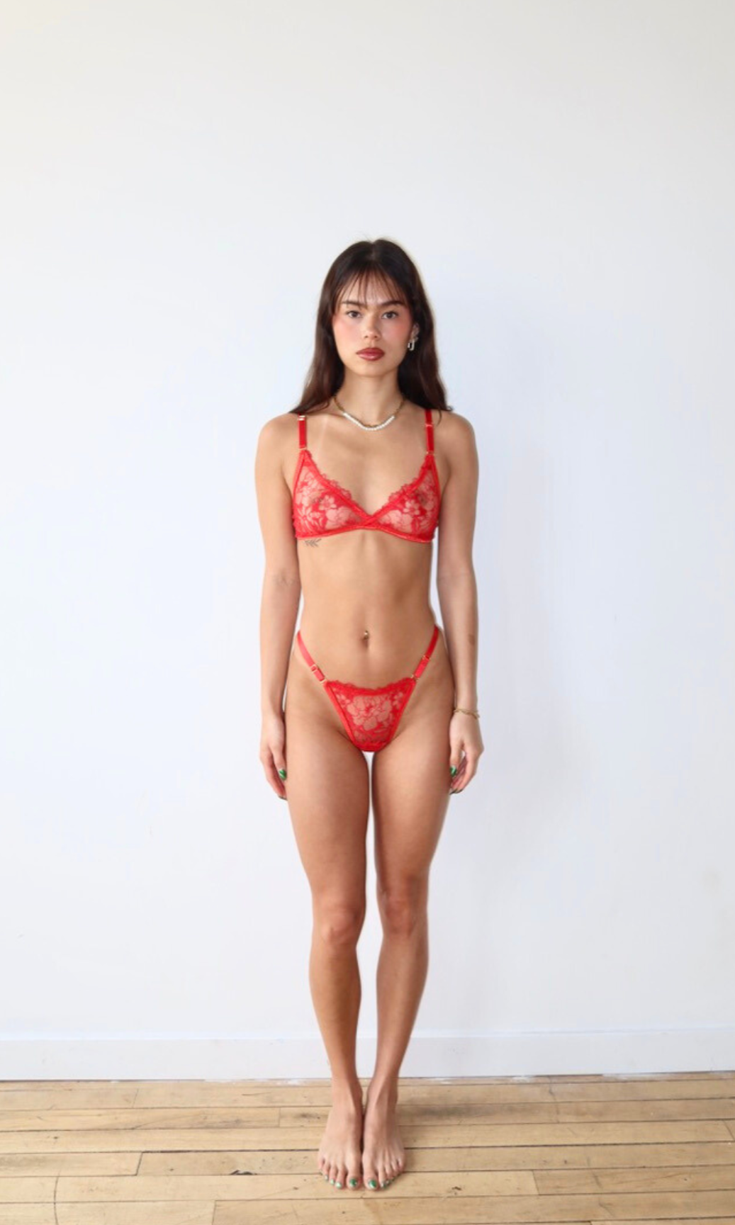 Our most dainty piece yet. Made from embroidery lace, for the bralette girlies. This bralette was designed to be light and fun. She's red hot πΆοΈ