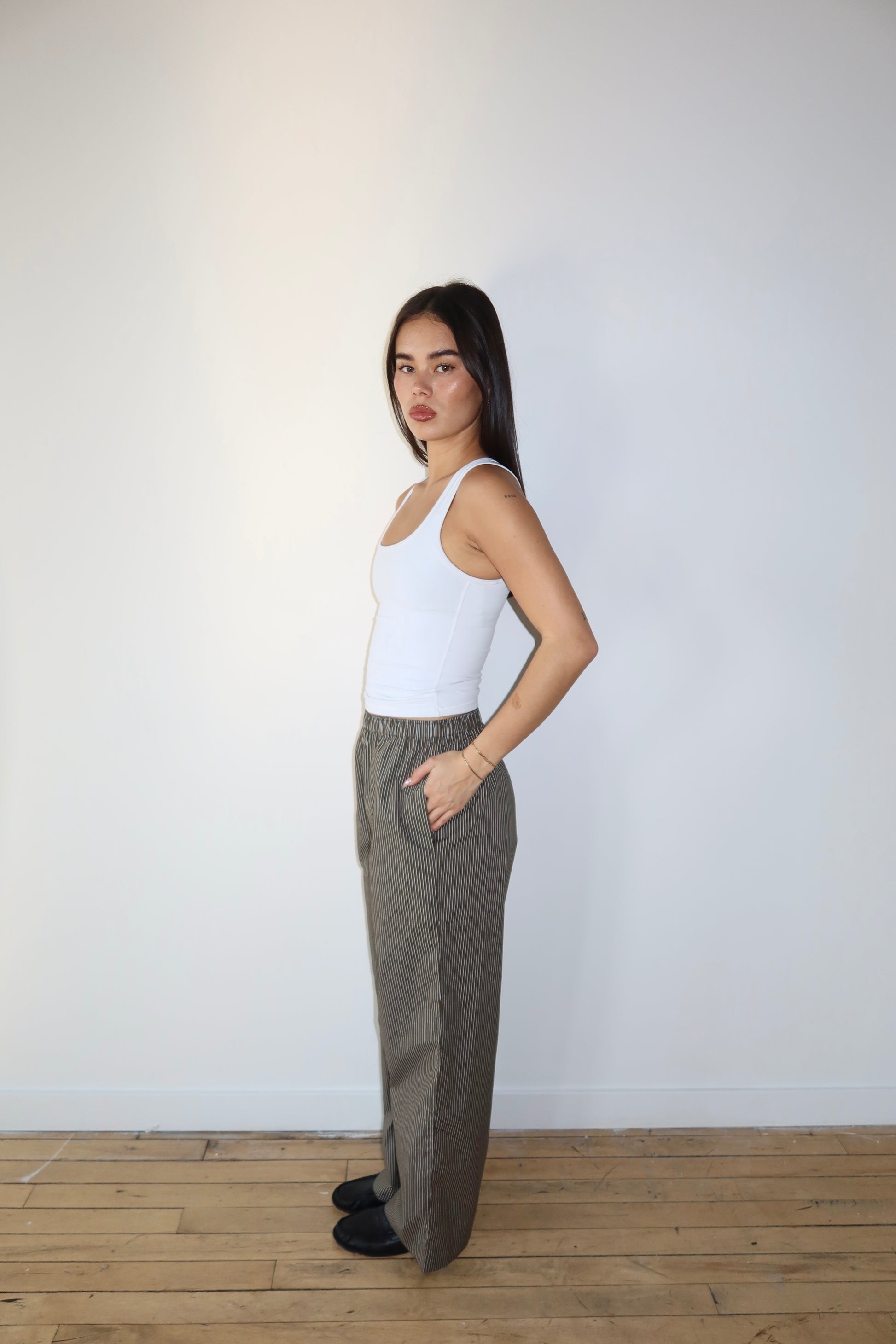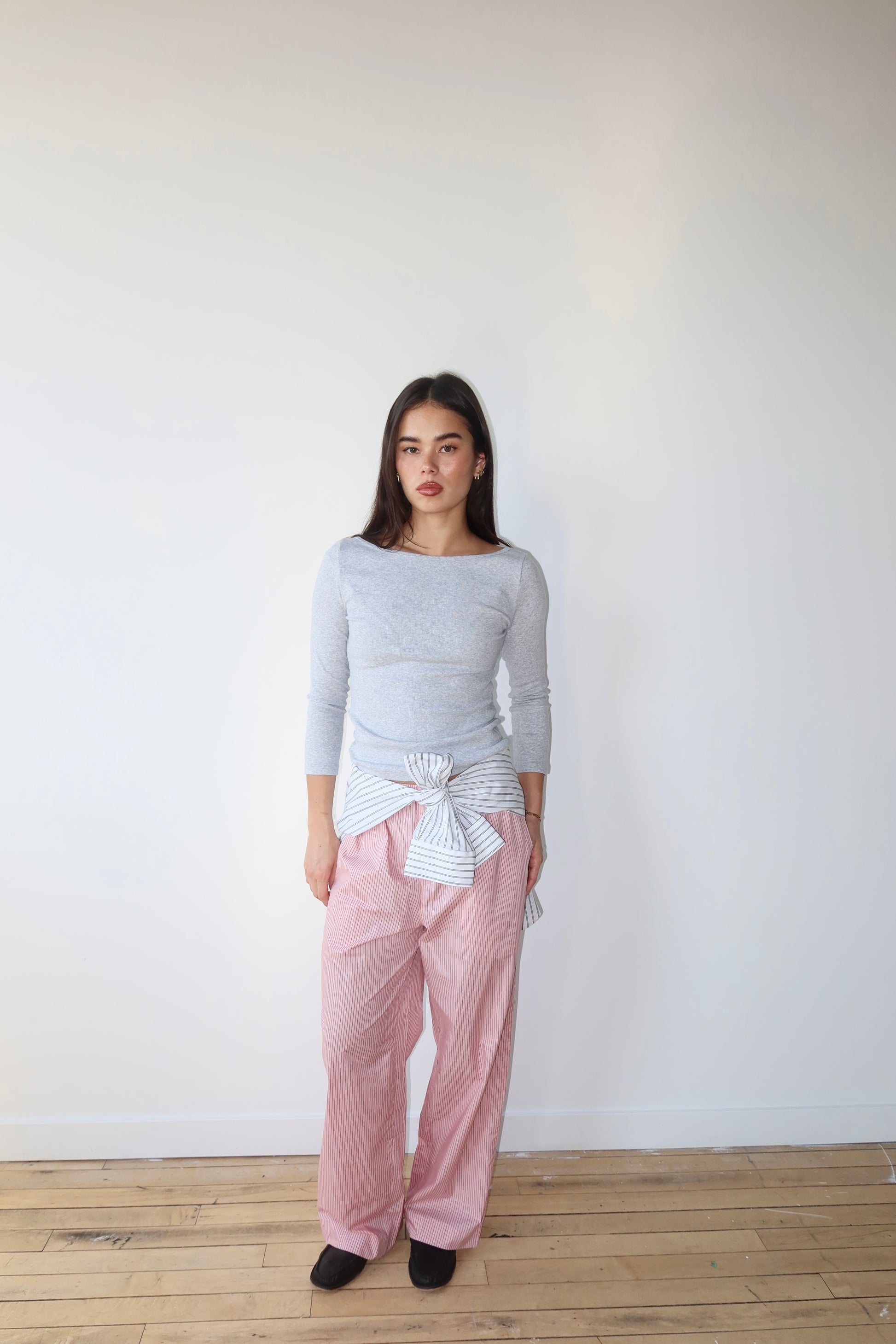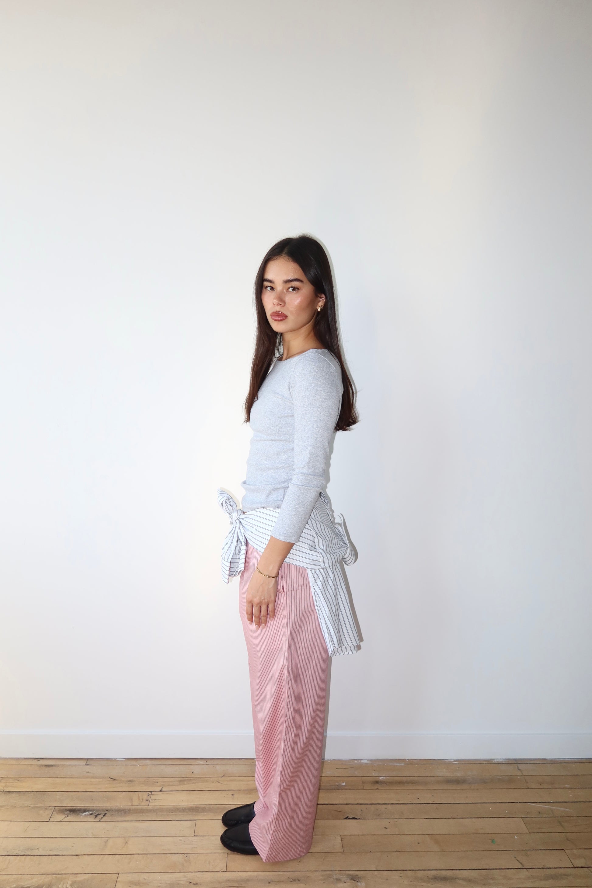 - Model wearing The Stripe Pop Shirt in S/M and the Pop Stripe Pant in S